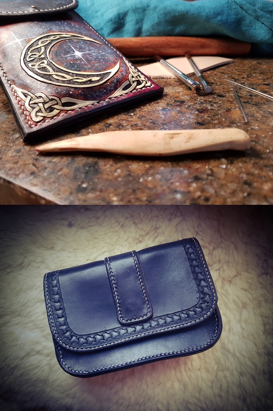 J’ai une auto entreprise de maroquinerie ou je fabrique des sacs, des sacoches, des porte feuilles et porte cartes, des bracelets, des ceintures et divers autres objets. Chaque piece est intégralement réalisée à la main (découpe, teinture, repoussage, couture) et chacune d’entre elle est unique ou dans une toute petite série.